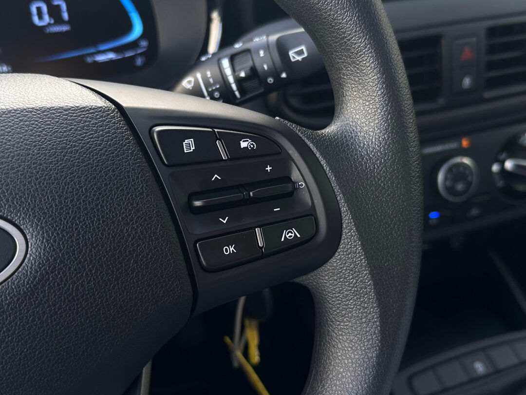 Met de achteruitrijcamera ziet u wat er achter de auto gebeurt. Zo rijdt u moeiteloos achteruit. Slimme spraakbesturing herkent gesproken opdrachten en voert ze uit. De jeugd is niet los te maken van hun smartphone, en dat zie je ook aan deze jonge auto. Via een speciale app staat u overal en altijd in contact met uw vierwieler. Superhandig! Er is geen bestemming die het aanwezige navigatiesysteem niet kent. Dat rijdt lekker! Een constante snelheid is goed voor de ontspanning onderweg, en de cruise control zorgt ervoor. De Hyundai is standaard voorzien van: airconditioning, centrale deurvergrendeling met afstandsbediening, boordcomputer en verstelbaar stuur.